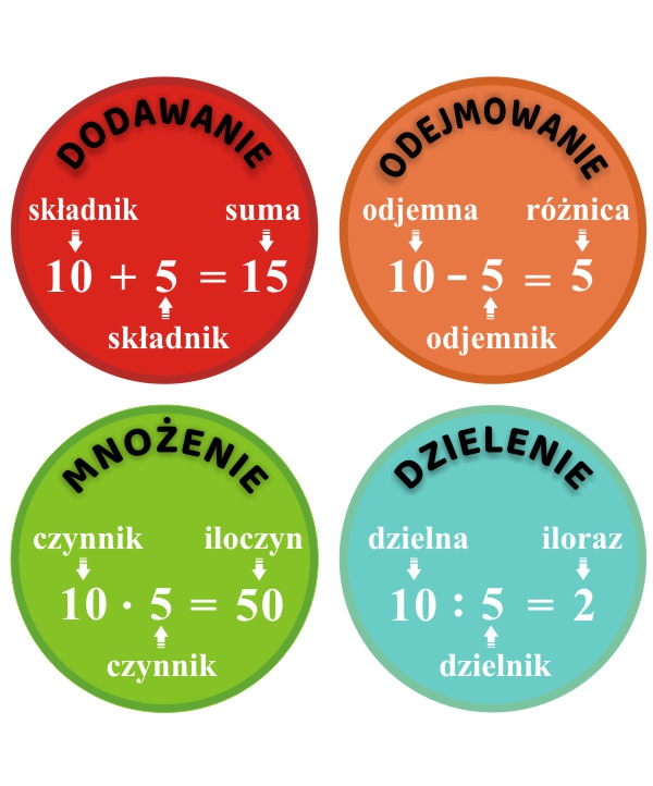 Naklejki podłogowe do szkoły suma, różnica, iloczyn, iloraz nr K58 zestaw