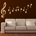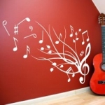 Proponowana przez nas muzyczna naklejka ścienna powinna spełnić Twoje oczekiwania. Spójrz, ile instrumentów! Ile fantazyjnie połączonych z motywami roślinnymi nut i nutek!
