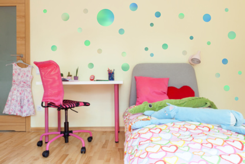 Kropki, kropeczki, groszki, wielobarwne naklejki w pastelowych kolorach, modne i trwałe. Takie detale potrafią ożywić pokój każdego dziecka. Spróbuj i Ty a przekonasz się, że warto zainwestować parę złotych w tak wyjątkowe dodatki. A ile przy tym zabawy i wspólnego spędzania czasu z dzieckiem! Ciebie i Twoje dziecko może ograniczyć tylko wyobraźnia :)