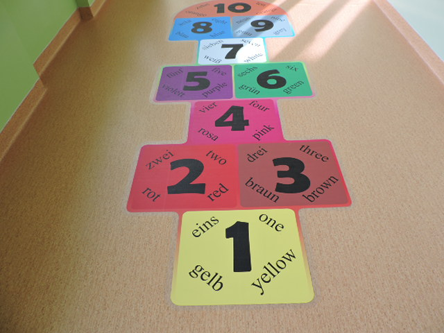 Gra w klasy to wyjątkowa zabawa dziecięca, ale też i kolorowa dekoracja, której zadaniem jest urozmaicenie nudnych szkolnych korytarzy jak również utrwalanie pisowni języka angielskiego i niemieckiego. Kup już dziś naszą naklejkę podłogową!