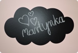 | Naklejka tablicowa z kolorową kredą. | Naklejka tablicowa z malunkiem na lateksowej ścianie. | Widoczna lekko chropowata struktura naklejki tablicowej. |