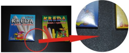 Naklejki na schody występują w różnych kolorach i w pełnej wersji kolorystycznej. Wszystkie nalepki wycięte są po obrysie i mają lekko zaokrąglone rogi, aby utrudnić zrywanie. Dla dłuższej trwałości i wygody zostały pokryte dodatkowym bezbarwnym matowym laminatem.