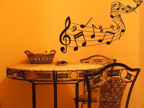 Naklejka dekoracyjna Pięciolinia z nutami nadaje się na suchą, czystą i płaską powierzchnię.