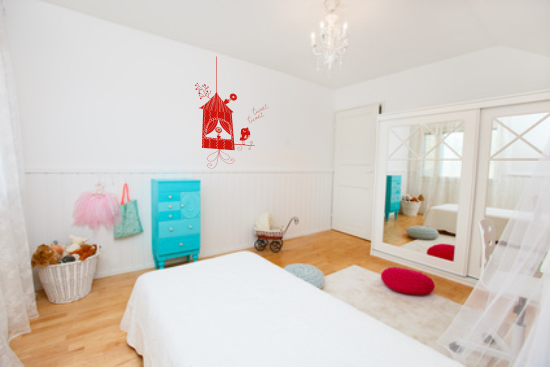Naklejka dla dzieci Ptaszek z budką nadaje się na płaską, suchą i czystą powierzchnię.