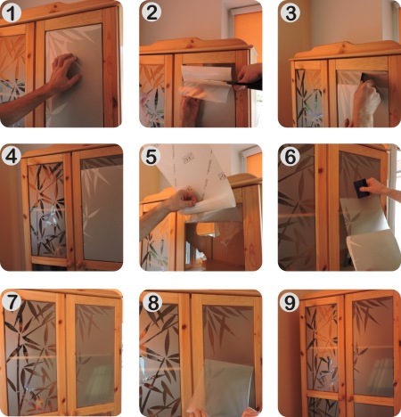1. Samoprzylepna naklejka na lustro z folii imitującej piaskowanie dająca efektem oszronionej powierzchni.