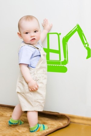 Naklejka na ścianę Koparka CAT nadaje się na płaską, suchą i czystą powierzchnię.