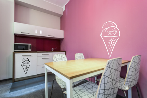 4. W zależności od tego, ile masz miejsca w pomieszczeniu i jaką dysponujesz powierzchnią, wybierz najbardziej odpowiadający Ci wymiar z lodami. Im większa naklejka, tym cena jest wyższa. Naklejkę możesz zamontować na każdej płaskiej, suchej i czystej powierzchni, typu: ściana, meble, szkło, okno, drzwi, lodówka, biurko, laptop, lustro, szafa z płyty MDF, itp.