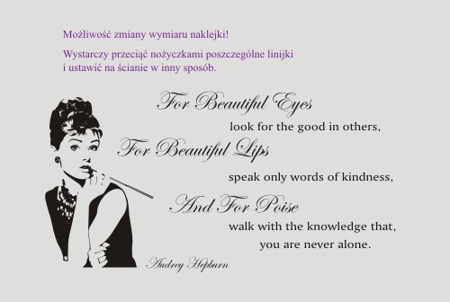 Naklejka na ścianę tekst Audrey Hepburn nadaje się na suchą, czystą i płaską powierzchnię.