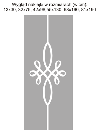 4. W zależności od tego, ile masz miejsca i jaką dysponujesz wolną powierzchnią, wybierz najbardziej odpowiadający Ci wymiar naklejki na szybę z ornamentem. Im większy wymiar, tym cena jest wyższa. Cena zmienia się po zaznaczeniu konkretnego wymiaru, np. naklejka o wym. 68x160 cm to koszt 137 zł.