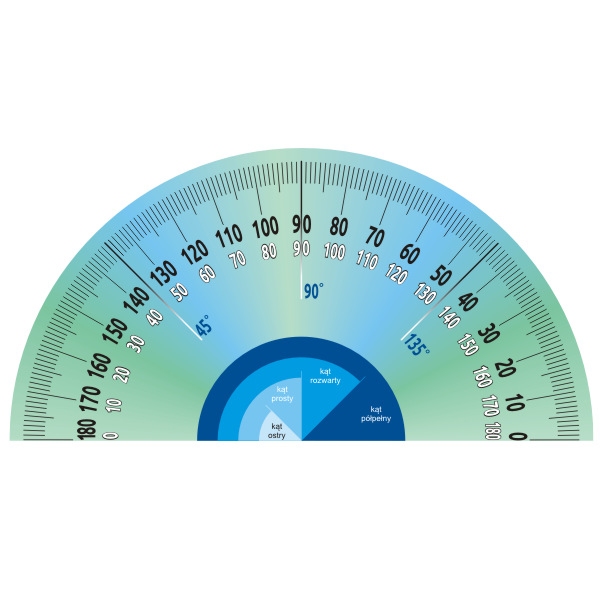 • Edukacja w atrakcyjnej formie: Dzięki niebiesko-zielonym kolorom i przemyślanej grafice, nasza naklejka sprawia, że nauka staje się przyjemnością. Uczniowie będą zafascynowani odkrywaniem kątów i ich zastosowania w praktyce. Na naklejce umieszczone zostały dodatkowo oznaczenia kątów: ostry, prosty, rozwarty i półpełny, wskazując odpowiednio: 45, 90, 135 i 180 stopni.