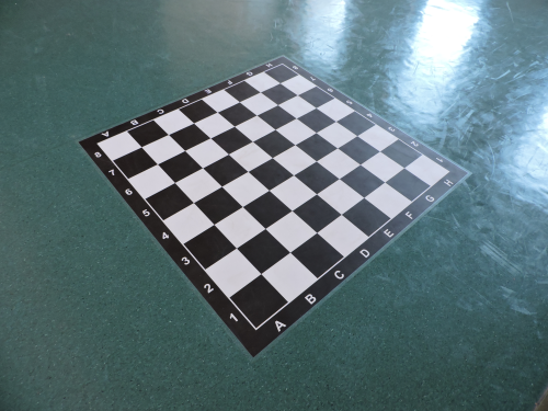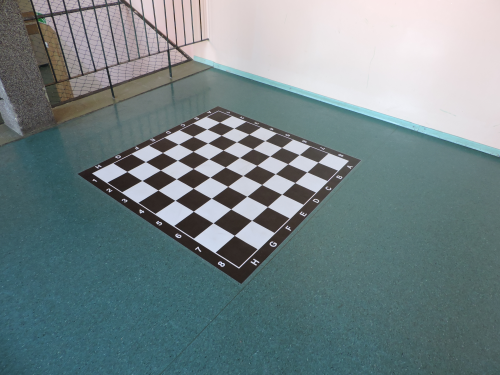 Tworzenie planszy : Naklejki podłogowe tworzą dużą planszę szachową, gdzie każdy kwadrat jest oznaczony odpowiednim symbolem. Uczniowie mogą łatwo zrozumieć układ planszy i zasady gry.