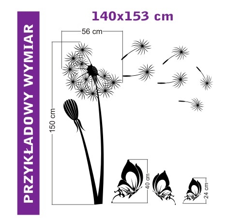 1. Naklejka ścienna Dmuchawce nr M7 składa się z jednego dmuchawca 6 lotek i 3 motylków.