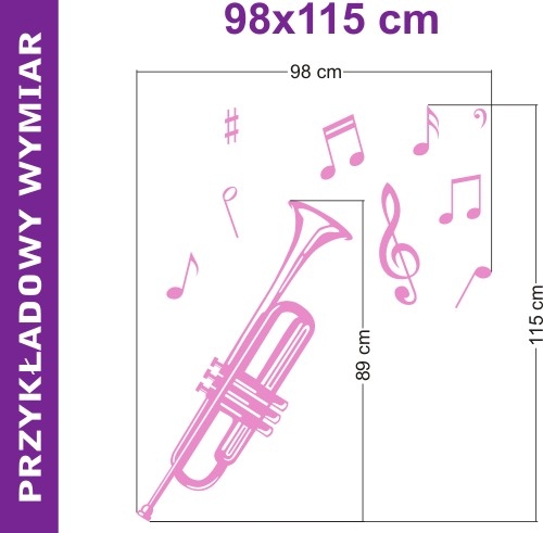 4. W zależności od tego, ile masz miejsca w pomieszczeniu i jaką dysponujesz powierzchnią, wybierz najbardziej odpowiadający Ci wymiar trąbki. Im większa naklejka, tym cena jest wyższa. Naklejkę możesz zamontować na każdej płaskiej, suchej i czystej powierzchni, typu: ściana, meble, szkło, okno, drzwi, lodówka, biurko, laptop, lustro, szafa z płyty MDF, itp.