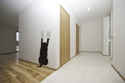 Naklejka welurowa Drapiący kotek do dekoracji ściany w przedpokoju lub wszędzie tam, gdzie znajdziesz dla niej miejsce.