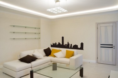 Welurowa naklejka Miasto na ściany pomalowane farbą lateksową. Taki wzór sprawi, że twoje wnętrze stanie się nowoczesne.