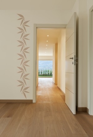Welurowa naklejka border ozdobny z liśćmi bambusa idealnie nadaje się do ozdobienia narożnika ściany lub miejsca tuż przy drzwiach.
