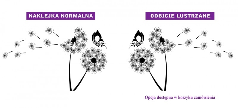 1. Naklejka welurowa ścienna Dmuchawce z motylkiem W1 składa się z dwóch dmuchawców, motylka i siedmiu lotek.