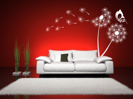Naklejka welurowa ścienna Dmuchawce z motylkiem W1