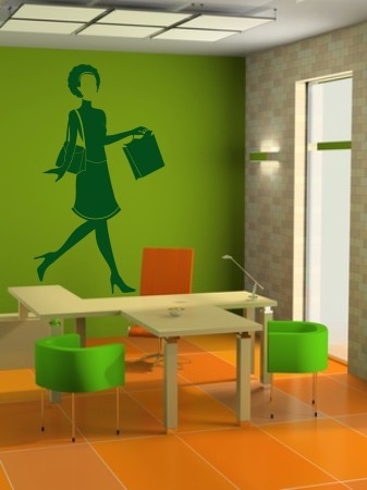 Welurowa naklejka Kobieta na zakupach to idealna propozycja na ścianę do sklepu, biura i do domu. Naklejka do wyboru w 14 kolorach.