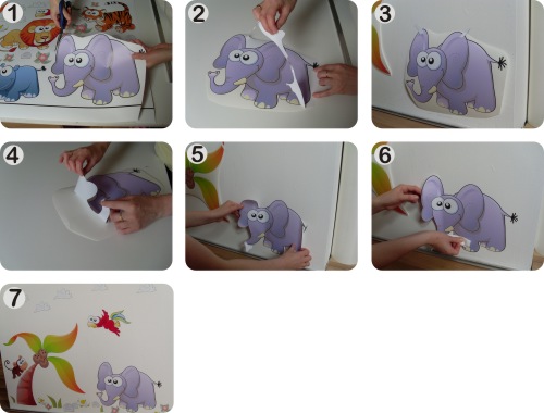 4. Klejenie naszych naklejek to również zabawa dla Twojego dziecka. Wycięte po obrysie obrazka ułatwiają odklejenie od papieru i aplikację na ścianie. Przy większych naklejkach warto skorzystać z pomocy rodziców.