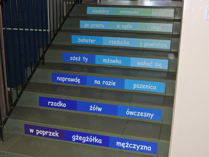 W szkole może być i kolorowo, i edukacyjnie. Wystarczy przykleić na schody naklejki z poprawną pisownią języka polskiego i gotowe. Może teraz uczniom przyjdzie łatwiej zapamiętać trudne wyrazy?