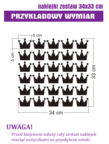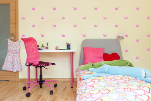 Korony do pokoju małej i dużej księżniczki. Mieszka u Ciebie taka dziewczynka? Na pewno będzie zadowolona z takiego wystroju! Zestaw składa się z 30 naklejek Koron o takiej samej wielkości.