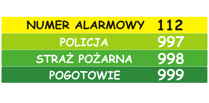 3. Naklejki z telefonami alarmowymi są dodatkowo pokryte folią (laminatem) zabezpieczającą wydruk. W ten sposób są bardziej trwałe, odporne na zarysowania i blaknięcie, a w razie zabrudzeń można bez problemu je umyć.
