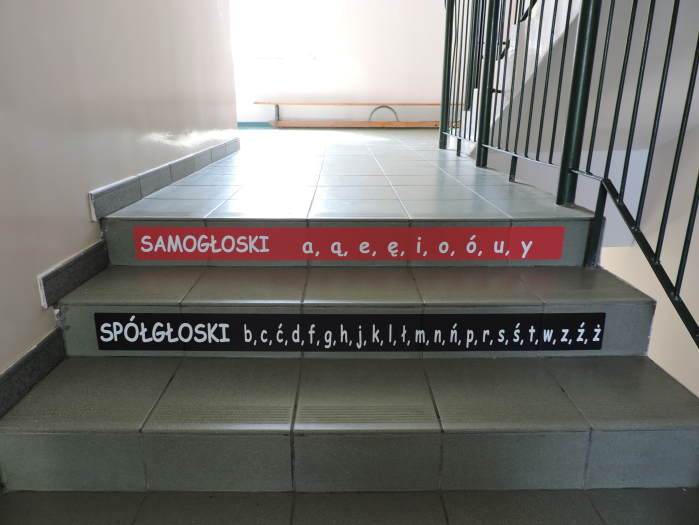 2. Naklejki zostały wydrukowane ekologicznym atramentem bezpiecznym dla środowiska i można je z powodzeniem zastosować na szkolnych schodach.