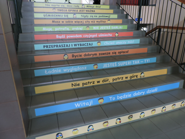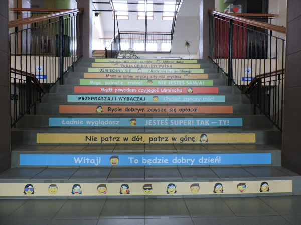 2. Naklejki zostały wydrukowane ekologicznym atramentem bezpiecznym dla środowiska i można je z powodzeniem zastosować na szkolnych schodach.