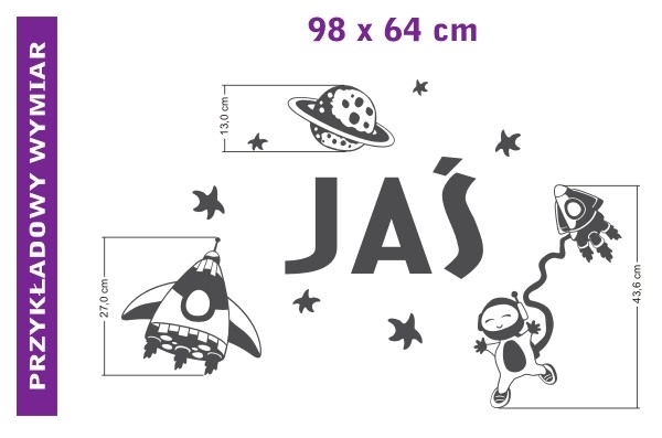 Imiona przyklejane na ścianie czy meblach są cały czas modne. Może i Ty wypróbujesz takie naklejki? W tym zestawie oprócz imienia znajdziesz również kilka gadżetów kosmicznych dla małego astronauty.