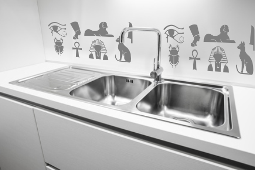 Szukasz zupełnie czegoś innego? Nie gustujesz w kwiatach ani klimatach morskich? To może takie motywy egipskie spełnią Twoje oczekiwania? Nie musisz naklejki kleić tak jak jest, możesz rozciąć na pojedyncze elementy i przykleić na różnych kafelkach.