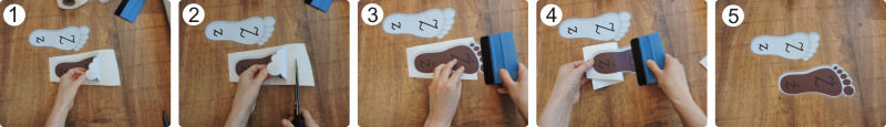 Wystarczy naklejkę odkleić od białego papieru podkładowego i przykleić do podłogi. Czynność należy wykonywać powoli, centymetr po centymetrze, aby uniknąć bąbelków powietrza. Przed klejeniem należy powierzchnię odtłuścić kilkukrotnie denaturatem.