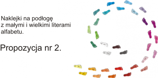 Naklejki w kształcie stópek są umieszczane na podłodze w różnych miejscach w klasie lub na korytarzu. Każda stópka reprezentuje jedną literę alfabetu. Dzieci mogą poruszać się od jednej stópki do drugiej, ucząc się liter poprzez ruch. To doskonały sposób na połączenie nauki z aktywnością fizyczną!