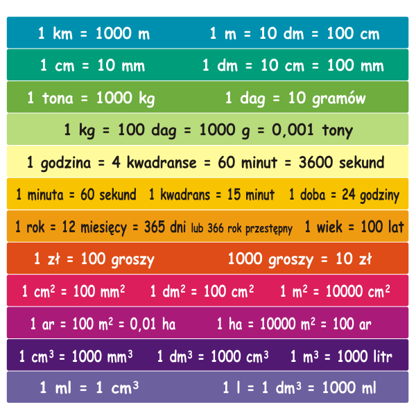 1. W zestawie znajduje się 12 prostokątnych naklejek z lekko zaokrąglonymi rogami. Znajdziesz tu przeróżne jednostki miary, np. centymetry, metry, kilogramy, litry, itp.