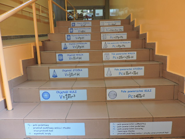 1. W zestawie znajduje się 16 prostokątnych naklejek z zaokrąglonymi rogami. Każda naklejka ma wymiar 43 cm długości na 10 cm wysokości. Cały arkusz ma wymiar 87x85 cm. Znajdziesz tu wzory na pola i objętości następujących brył: sześcian, prostopadłościan, graniastosłup, ostrosłup, walec, stożek i kula.