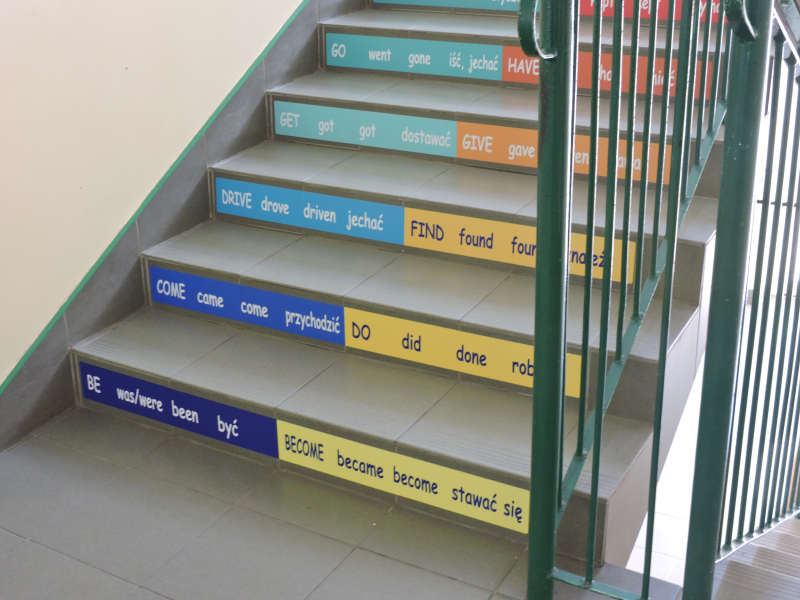2. Naklejki zostały wydrukowane ekologicznym atramentem bezpiecznym dla środowiska i można je z powodzeniem zastosować na szkolnych schodach.