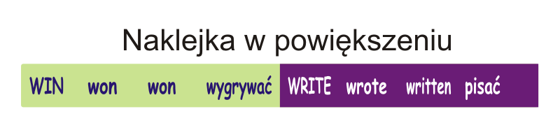 W każdej naklejce są po 2 czasowniki w dwóch kolorach (naklejka jest połączona).
