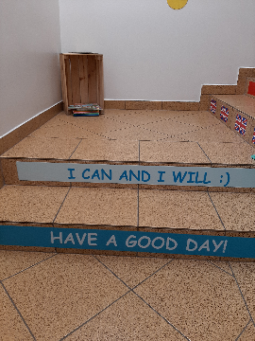 2. Naklejki zostały wydrukowane ekologicznym atramentem bezpiecznym dla środowiska i można je z powodzeniem zastosować na szkolnych schodach.