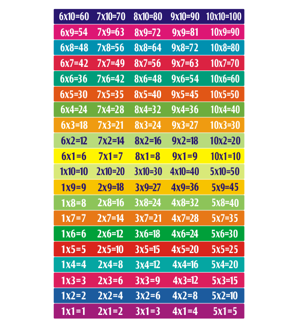 Naklejki na schody Tabliczka mnożenia 128x10cm wszystkie działania nr K20