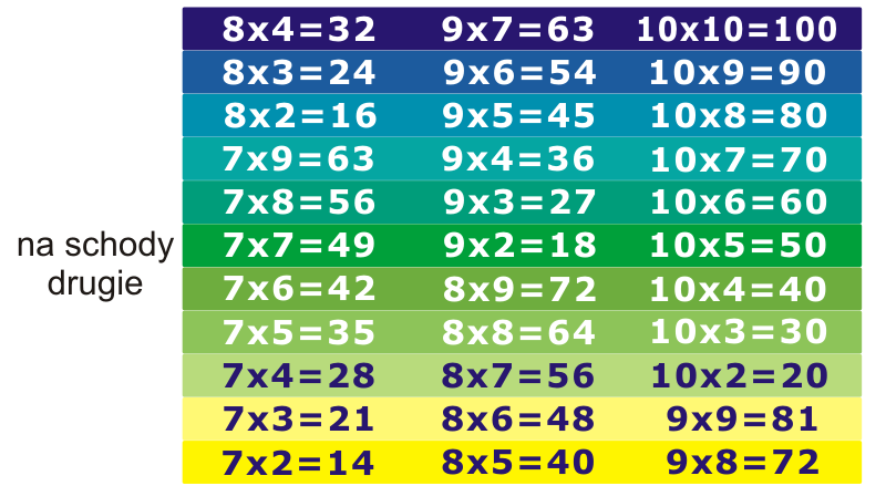 Dzięki takiej tęczowej tabliczce mnożenia w każdej szkole może być kolorowo i edukacyjnie! Wystarczy okleić 22 schodki wielokolorową tabliczką mnożenia i gotowe!