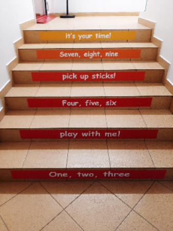 2. Naklejki zostały wydrukowane ekologicznym atramentem bezpiecznym dla środowiska i można je z powodzeniem zastosować na szkolnych schodach.