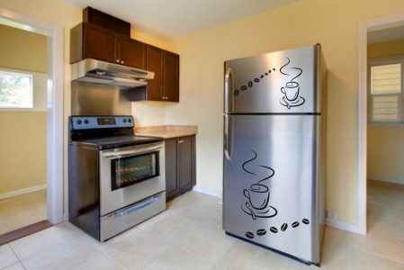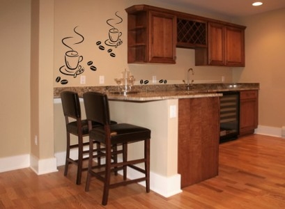 Naklejki do kuchni Dwie filiżanki kawy z ziarenkami pozwolą na dekorację ściany, szafek kuchennych i lodówki. Taki zestaw szybko odmieni nudne wnętrze!
