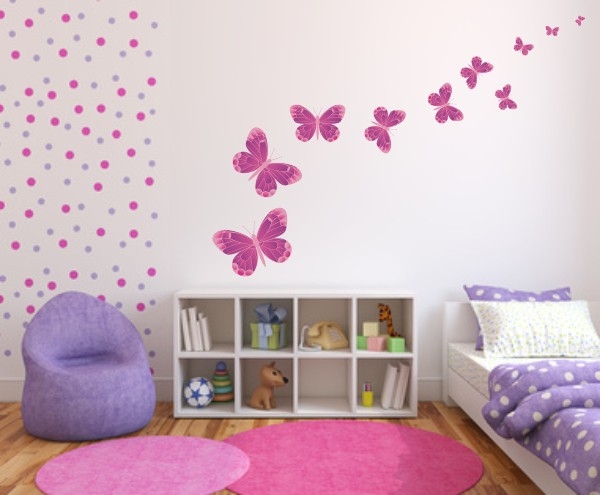 W zestawie znajduje się 10 przeuroczych kolorowych motylków różnej wielkości. Największe naklejki przyklej na ścianę, średnie na szafę a najmniejsze na biurko tworząc wyjątkowe kompozycje!