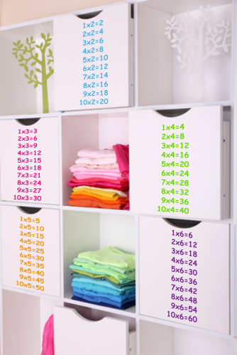 Naklejki na ścianę Tabliczka mnożenia nadają się na płaską, suchą i czystą powierzchnię.