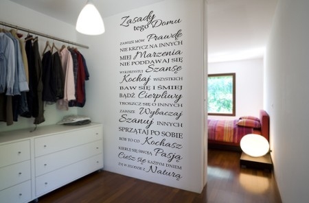 Naklejki na ścianę tekst Zasady tego domu nadają się na suchą, czystą i płaską powierzchnię.