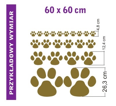 4. W zależności od tego, ile masz miejsca w pomieszczeniu i jaką dysponujesz powierzchnią, wybierz najbardziej odpowiadający Ci wymiar śladów kota. Im większa naklejka, tym cena jest wyższa. Naklejkę możesz zamontować na każdej płaskiej, suchej i czystej powierzchni, typu: ściana, meble, szkło, okno, drzwi, lodówka, biurko, laptop, lustro, szafa z płyty MDF, itp.