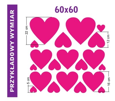 4. W zależności od tego, ile masz miejsca w pomieszczeniu i jaką dysponujesz powierzchnią, wybierz najbardziej odpowiadający Ci wymiar serduszek. Im większa naklejka, tym cena jest wyższa. Naklejkę możesz zamontować na każdej płaskiej, suchej i czystej powierzchni, typu: ściana, meble, szkło, okno, drzwi, lodówka, biurko, laptop, lustro, szafa z płyty MDF, itp.