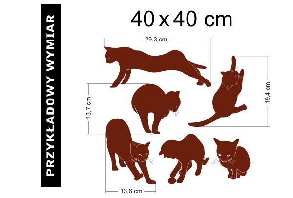 5. W zależności od tego, ile masz miejsca i jaką dysponujesz wolną powierzchnią, wybierz najbardziej odpowiadający Ci wymiar kotów. Im większy wzór weluru, tym cena jest wyższa. Nalepki możesz zamontować na każdej płaskiej, suchej i czystej powierzchni, typu: ściana, meble, okno, drzwi, lodówka, biurko, szafa z płyty MDF, laptop, itp.