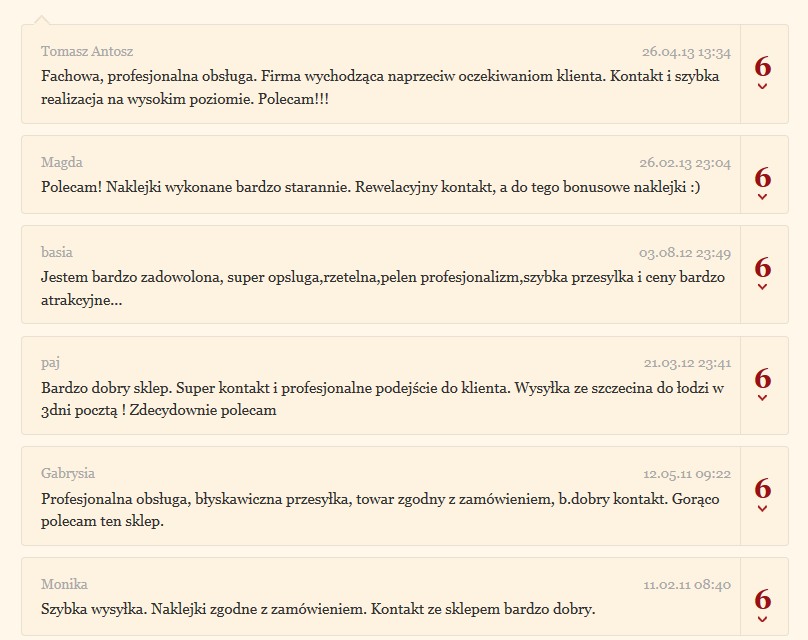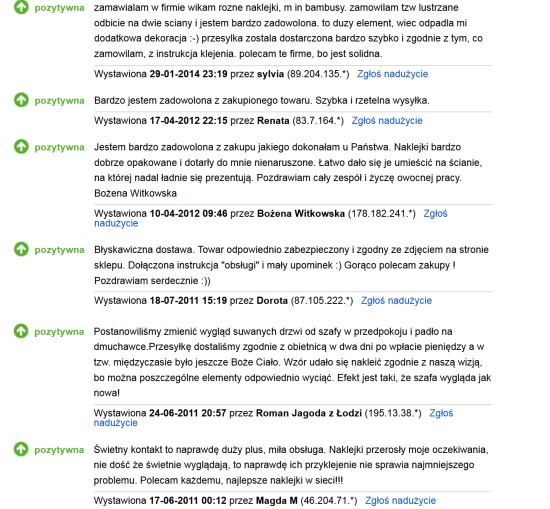 OPINIE z aktualnego sklepu, które znajdują się na podstronach produktów.