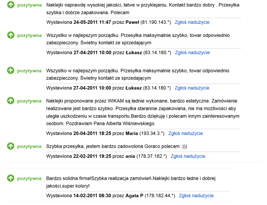 OPINIE z WIKAM.FIRMY.NET od roku 2009 do roku 2015